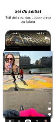 Sobald dein persönlicher Moment geteilt ist, öffnet sich dir die Welt deiner Freunde. Entdecke ihre spontanen Einblicke, kommentiere ihre BeReals und drücke deine Reaktionen mit individuellen RealMojis aus. Zudem zeigt dir BeReal auf Wunsch, wo deine Kontakte ihre Aufnahmen gemacht haben, und schafft so eine noch tiefere Verbindung zum Hier und Jetzt. Möchtest du über deinen Freundeskreis hinausblicken? Schalte dein BeReal auf „öffentlich" und erkunde im „Entdecken"-Feed, was andere Menschen in deiner direkten Umgebung bewegt. Manchmal überrascht BeReal auch mit besonderen Herausforderungen, die deinen täglichen Schnappschüssen eine kreative Wendung geben.