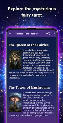 Entdecken Sie die Geheimnisse des mystischen Reiches mit der bezaubernden Fairy Tarot App. Tauchen Sie wie nie zuvor in die magische Welt der Feen ein und lassen Sie sich Ihre Zukunft detailliert vorhersagen.